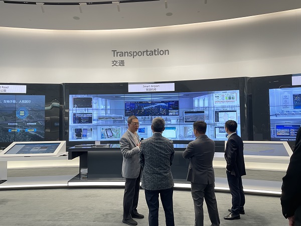 会议开始前,政务一网通工作人员带领我司人员参观华为园区以及展厅,对华为目前ICT发展情况、政务一网通相关产品及其应用场景等进行详细的介绍和现场演示。华为政务一网通业务,是基于华为鲲鹏政务云,融合AI、大数据、区块链技术,为自然人、企业法人提供全场景政务服务,包括一网通办、一网通协、一网通服、一体化监督、一体化党务等,为政府工作人员提供统一工作平台,为政府监管人员提供协同监管系统。业务涉及城市应急指挥中心、城市交通管理、智慧应急、智慧水利水务、智慧医疗等各大应用场景。