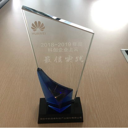 在本次活动中,我司智慧健康事业部总经理陈振还在当天下午的人工智能分论坛上代表中航信息领取了由华为颁发的“2018-2019年度科创企业上云最佳实践”奖牌,这是我司与华为携手合作以来取得的成就,也是我司在智慧城市建设的探索之路上的里程碑。