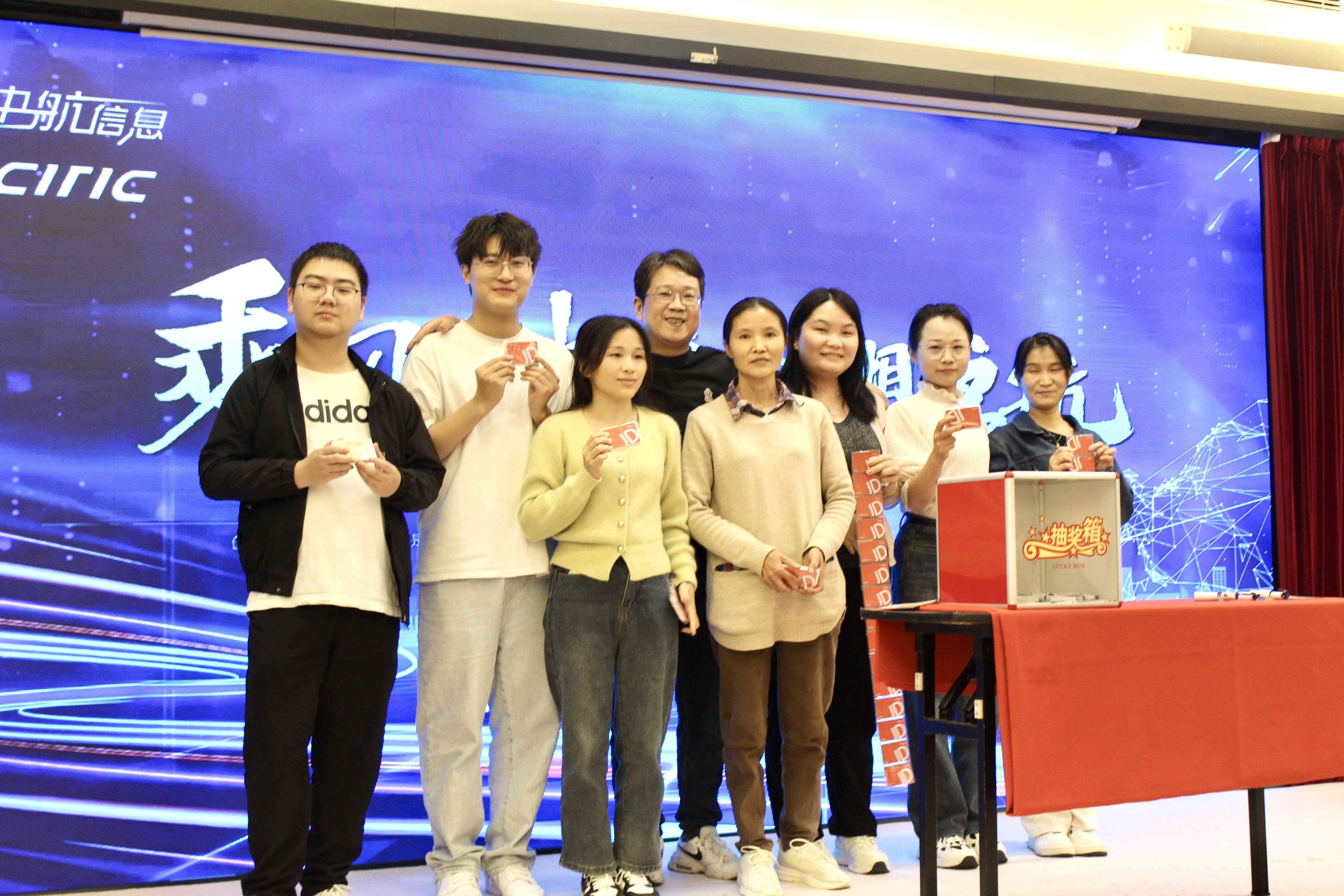 年会抽奖环节更是让同事们充满期待,现场设有丰厚的奖品,包括现金红包、京东礼券、小家电等。随着抽奖环节的进行,现场气氛愈发热烈,业务大佬们还自掏腰包进行嘉奖,气氛一次次被推向了高潮。