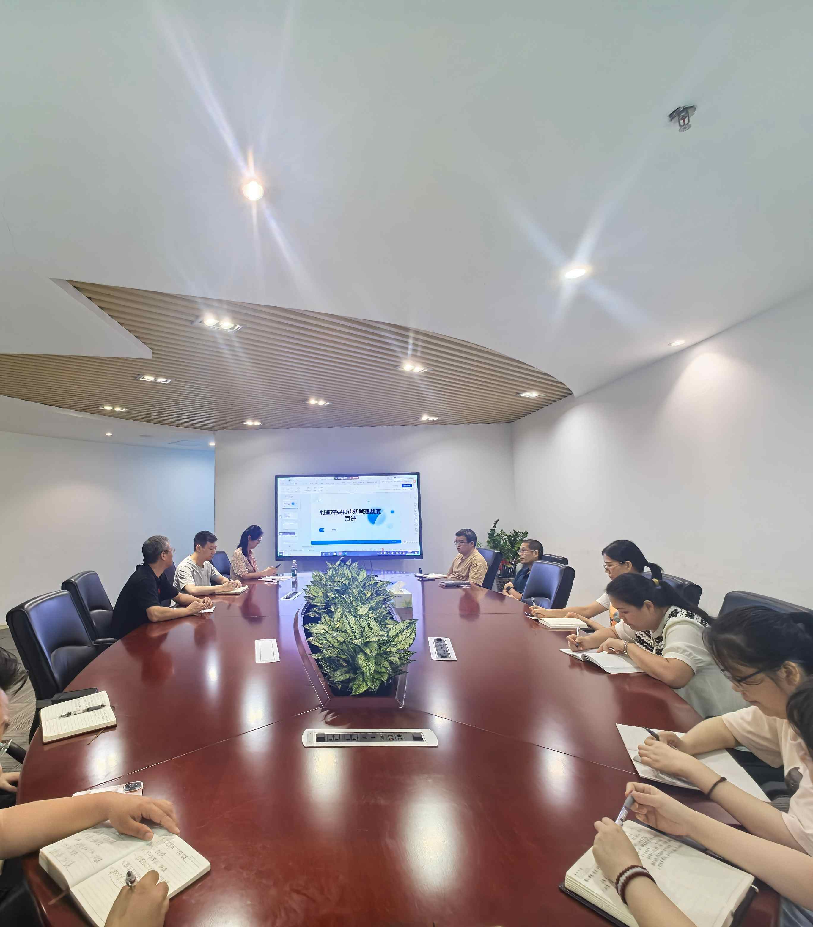 总部领导层在公司大会议室参加线下培训,其他员工则通过腾讯会议在线参与。培训期间,参训员工积极参与互动,针对利益冲突的相关问题展开了深入讨论与答疑。